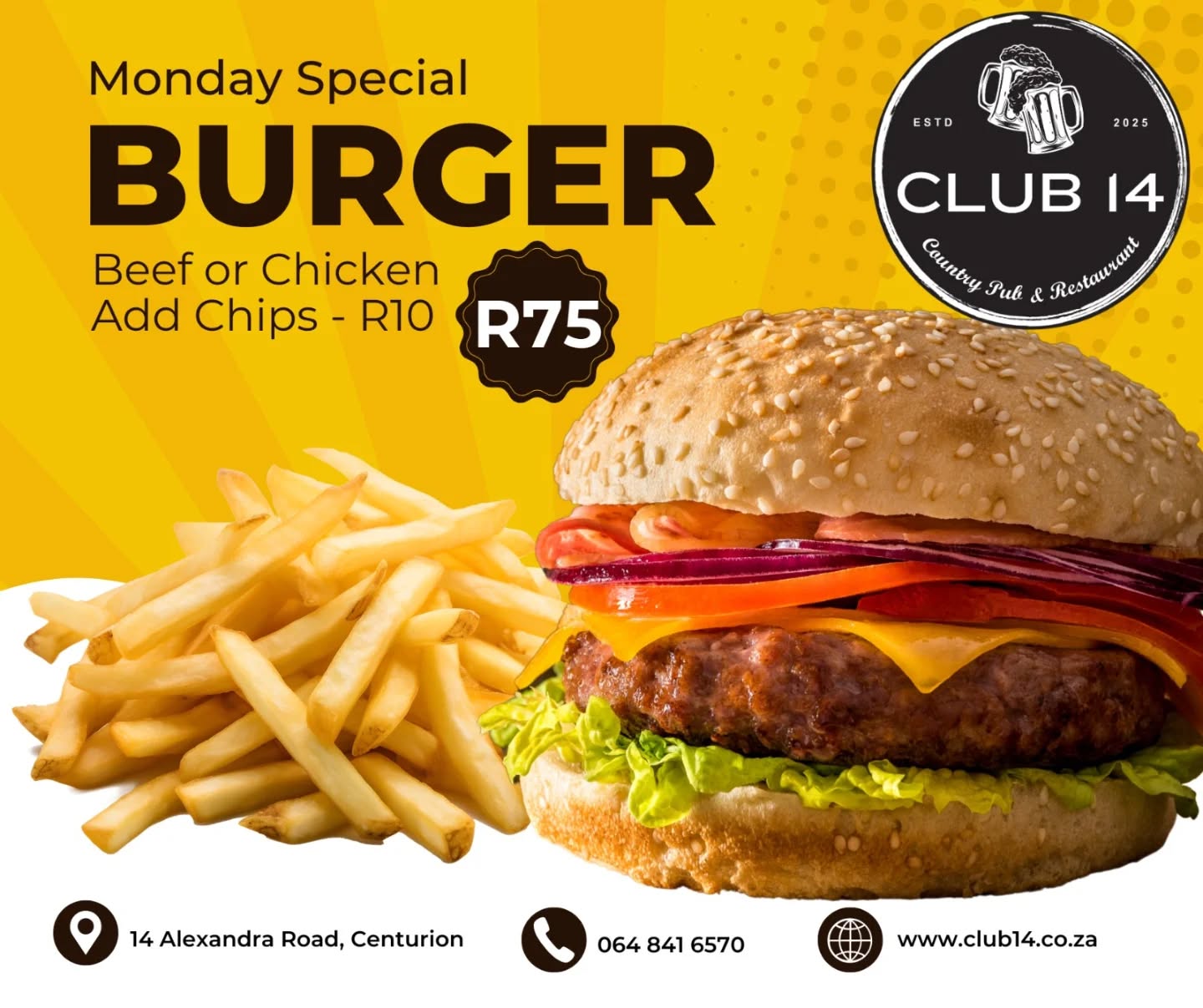 Club 14, located in Doringkloof, Pretoria, is not just a place to dine; it's a destination for BBQ enthusiasts and sports lovers. Our unique sports-themed environment sets the stage for a memorable dining experience. With a commitment to excellence, we offer quality dishes, an online food menu that adapts to your preferences, and seamless function booking options. Come join us for a flavor-packed journey like no other.